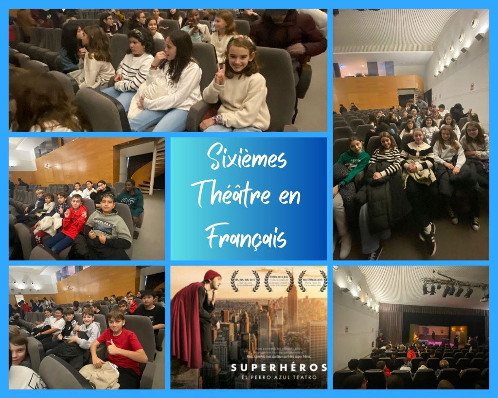 Aujourd’hui, les sixièmes de notre CEIP Río Ebro ont été les invités au  théâtre en français. La pièce, intitulée  Super- Héros, et jouée par la compagnie Le Chien Bleu, a été proposée par le service de Coopération linguistique de l’Ambassade de France et  a été ouverte aux établissements bilingues français de Saragosse dont nous faisons partie.